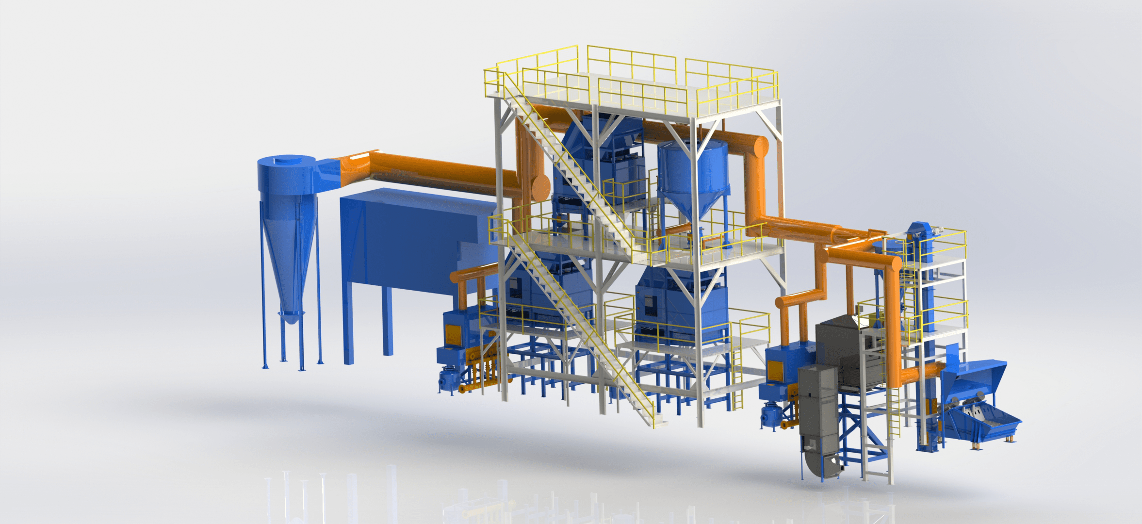 The secondary reclamation system is an ideal solution for foundries. With a production capacity of 5 tons per hour, this system mechanically eliminates undesirable minerals in the reclaimed sand through a polishing process. It can be used as an alternative to high thermal reclamation systems, increasing the sand recovery rate up to 90%.